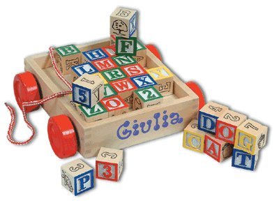 | SALE - Save an add'l 10% at checkout! Calling all toddlers! Our personalized classic ABC block cart is the perfect gift for all the toddlers in your life. This sturdy, solid wood block cart with pull string features 30 solid wood blocks with a colorful collection of pictures, letters and numbers. This very special gift combines learning and fun, and even gives your toddler a great way to practice new walking skills. ...Read more |